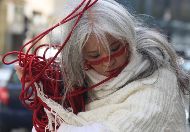 Die Performancekünstlerin, Choreografin und Tänzerin Aiko Kazuko Kurosaki hat in ihrer Arbeit den Fokus auf umwelt- und sozialkritische Themen gesetzt. Sie stellt in ihrem Vortrag drei aktuelle Projekte vor. RED Silence, eine installativ, performative Durational Performance, woraus sie eine kurze Bühnenversion zeigt, One Billion Rising Austria, eine künstlerische Kampagne für ein Ende der Gewalt an Frauen* und Mädchen* und Mehr für CARE!.