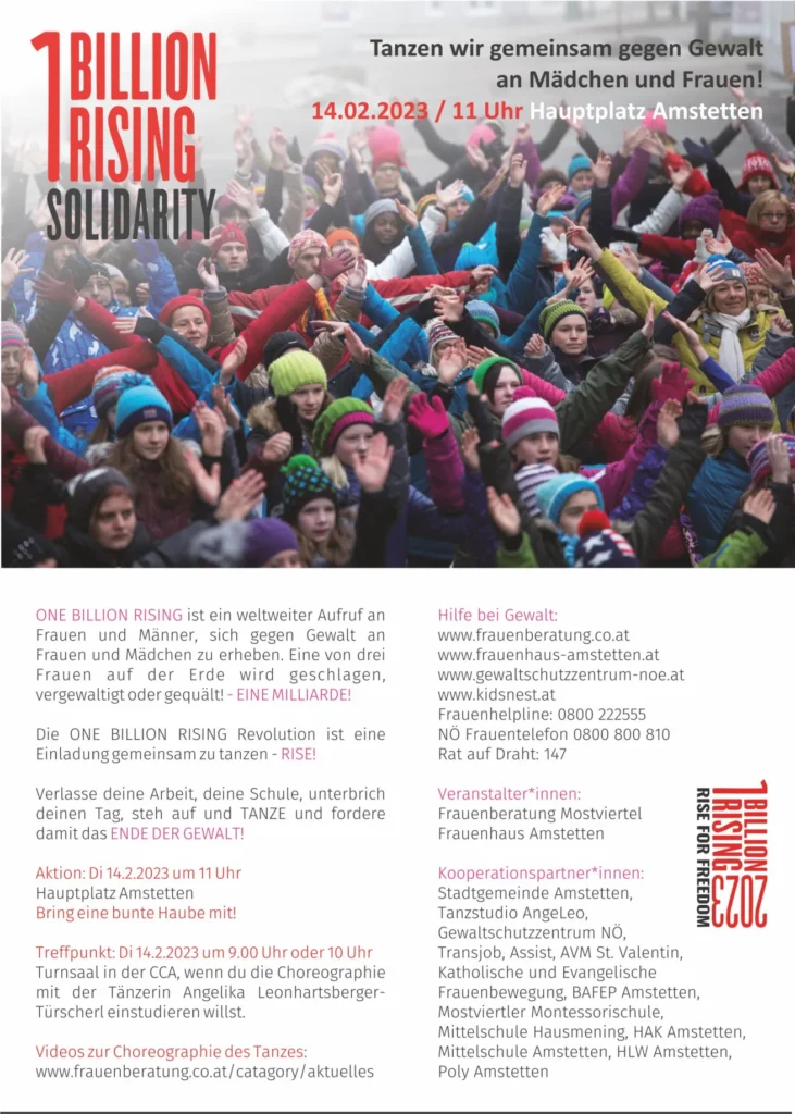 One Billion Rising Amstetten: 14.02.2023, 11.00 Uhr, Hauptplatz Amstetten